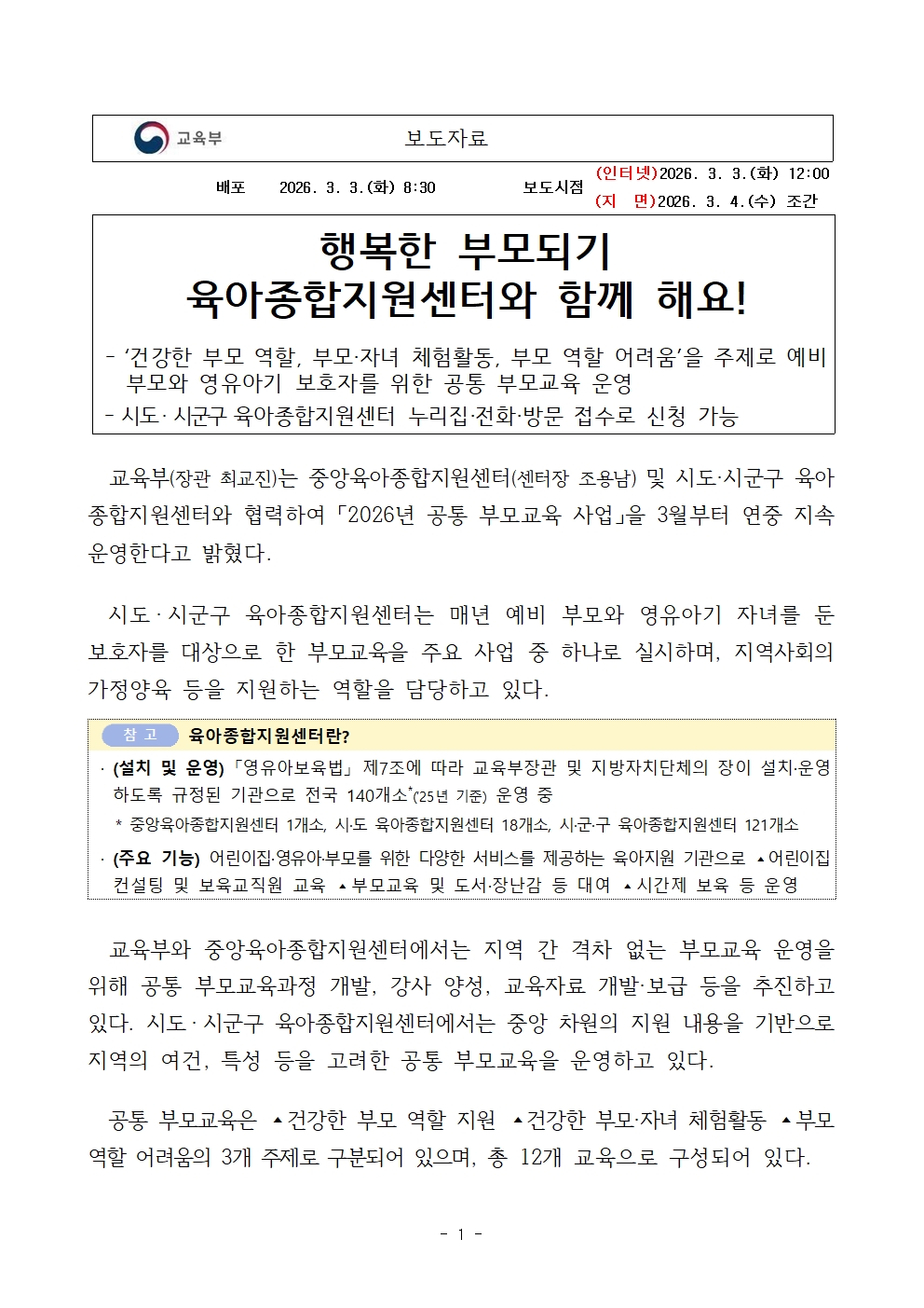 [공지] [보도자료] 행복한 부모되기 육아종합지원센터와 함께 해요!