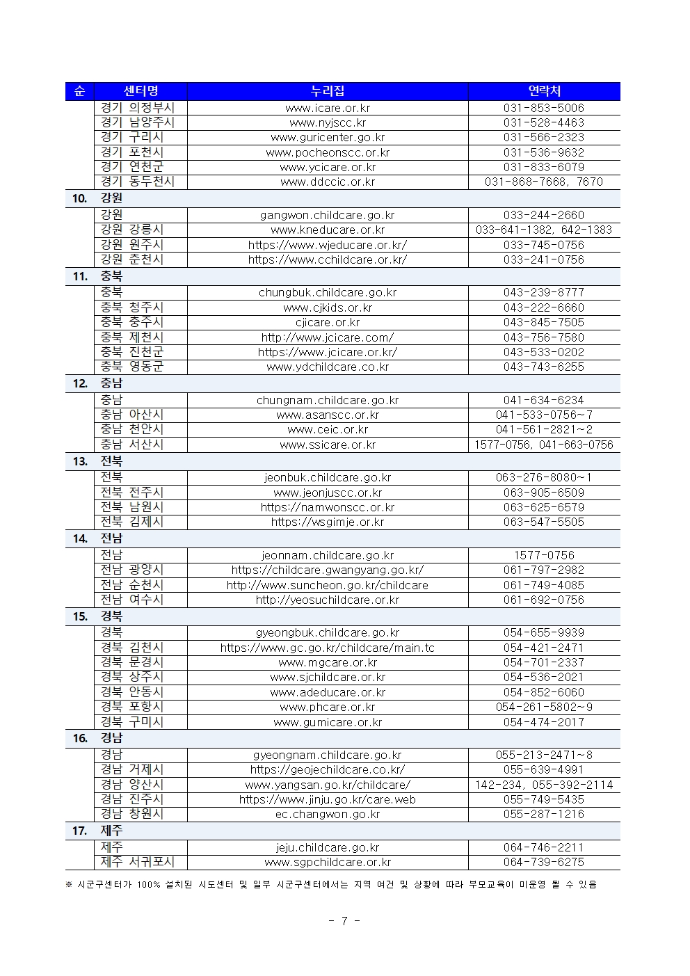 충북육아종합지원센터 협력기관