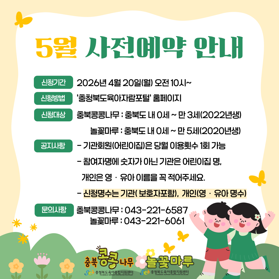 [공지] 콩콩나무,놀꽃마루 5월 사전예약 안내