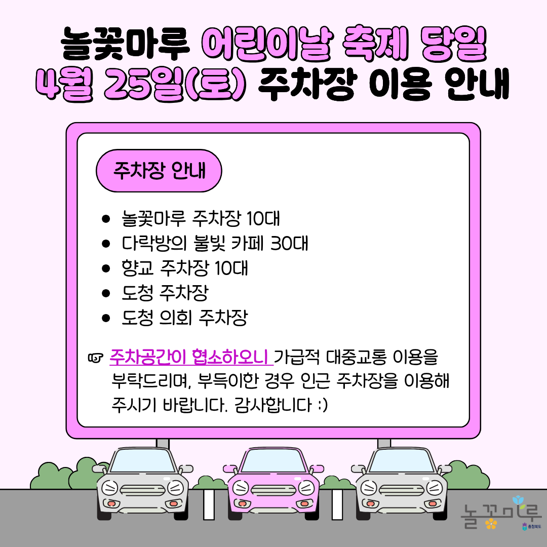[공지] [놀꽃마루] 2026년 4월 25일(토) 놀꽃마루 어린이날 축제 당일 주차장 이용 안내
